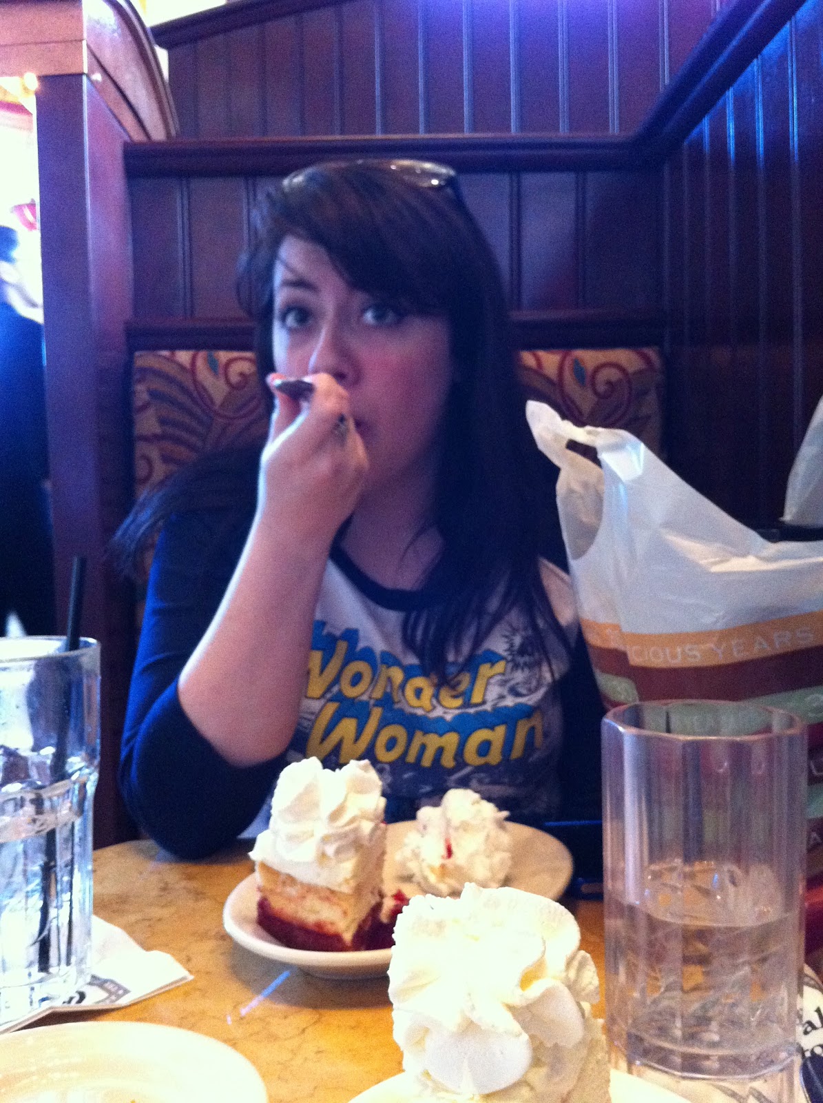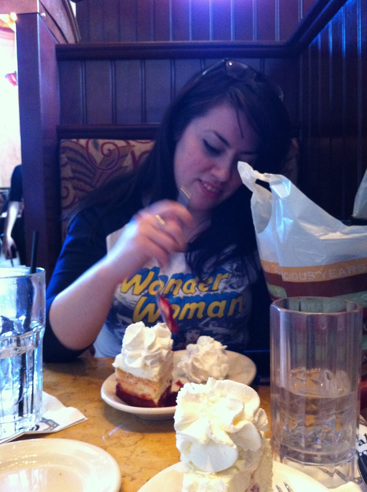 We left there and hit up a couple thrift stores. We both scored some decent rags. I scored two sweet blazers and she scored a dress(as seen above) and a skirt. Went to The Cheesecake Factory. My first time. Food was decent. Cheesecake was phenomenal. Blew too much money there. Should of just bought cheesecake. Took us a couple days to finish just one slice.