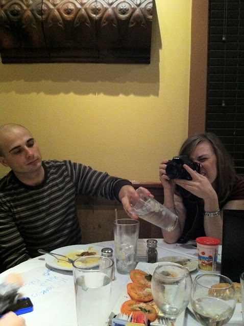 Then we got ready to go to Macaroni Grill to meet Jess and Josh for Valentines dinner. We get there shortly after they were seated and ordered our meals. I had seafood linguini which was pretty delicious (or at least the seafood was) and Sam had the fettucini alfredo which was a lot better than mine. I also ordered a glass of Placido Pinot Grigio which was pretty amazing. Italian wine always is. So we all hung out and discussed baby stuff and this blog you're reading right now.
